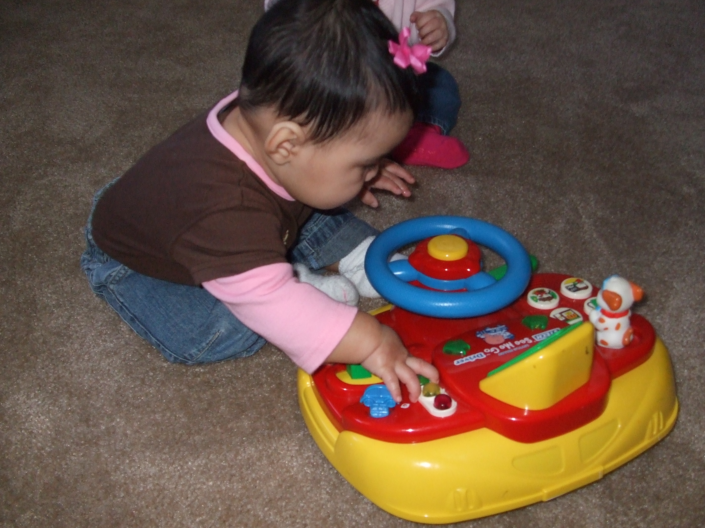 Today, every once and awhile, Hannah would stop playing, crawl over to me, pull herself up, and rest her head on my chest – her version of giving me a hug. I wish those moments would last forever, but just as quickly she crawls back to her toys, content to play beside me for awhile.