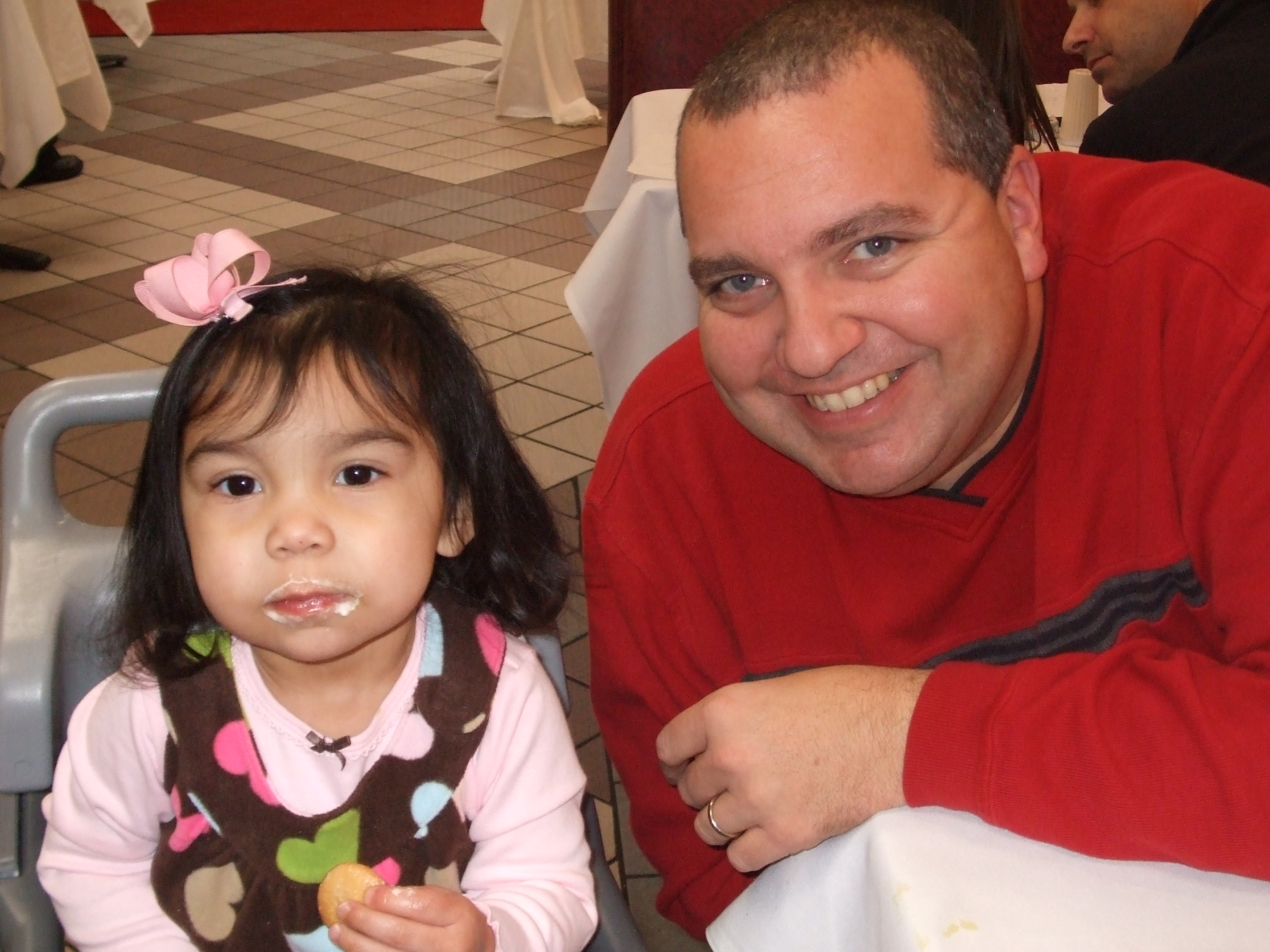 Daddy treated Hannah to a Daddy/Daughter Date at Chick-Fil-A on Thursday night. Our Chick-Fil-A does an excellent job with community projects, and they didn’t disappoint on this night either! Jamie said they were seated by someone at linen tables that had question cards – one for the daughters to ask the dads and vice versa. They were served from menus and treated to free dessert. And to top off the night, they gave each Daddy/Daughter a free picture of their night with a balloon and carnation for the kids. Hannah talked about it nonstop to me when they got home!