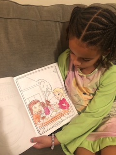 My daughter does enjoy the coloring book she received with the bundle. The pages match up with the book, so she has something to compare it to (she’s a bit of a perfectionist!). But it’s a good way for her to listen and interact with the story.